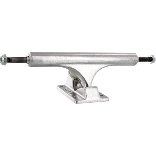 The hanger is the truck's T-shaped aluminum alloy grind area. It makes direct contact with rails and curbs. The hanger holds the axle on which the wheels are mounted. Hangers weigh about 10-13 oz, with lighter ones available. The width of your truck axle should closely match the width of your skateboard deck, usually within 1/4”.