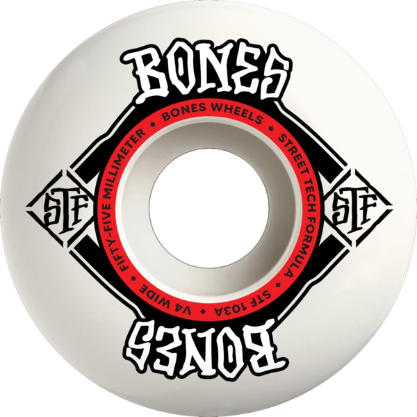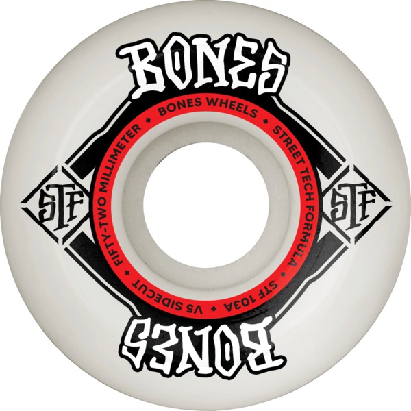 Bones Wheels STF V5 Square Logo White / Red Skateboard Wheels - 54mm 103a
