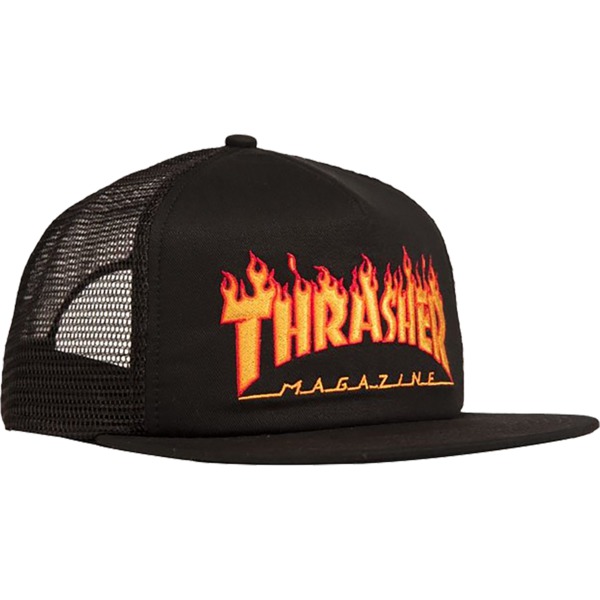 Thrasher Magazine Flame Black / Yellow / Red Embroidered Mesh Back Hat - Adjustable